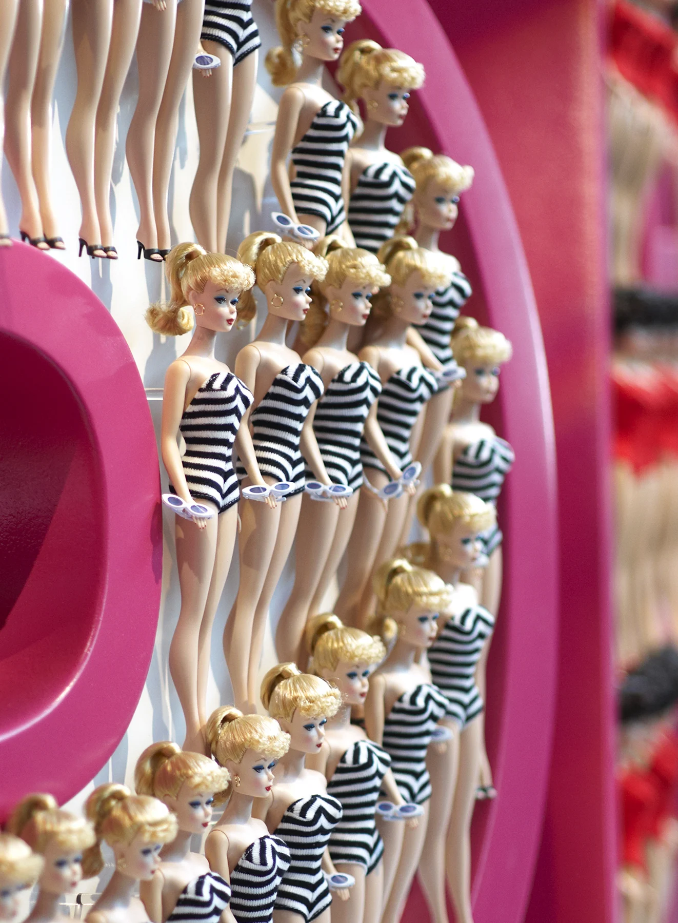 The initial intention of the conception and styling of “Barbie’s Closet” was to line the walls of the Barbie Toy Gallery Rotunda. However, this heroic, two-section, distinctive statement, has since become an inspiration for current product around the globe, setting the tone for on-brand styling. These assets have also been repurposed to paper the walls of worldwide retail environments and licensed stores, sell in the Barbie Collector’s Catalog, and decorate the boxes of one-of-a-kind exclusive dolls for New York’s Fashion Night Out.